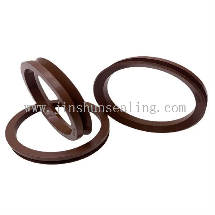 Gumijasta tesnila V obroča imajo prečni prerez v obliki črke V. Material, uporabljen za V obroče, je nitrilna guma in kloropren kavčuk, naravni kavčuk se uporablja za tesnjenje vode in zraka, butilna guma pa se uporablja za negorljivo hidravlično olje in fosfatni ester hidravlično olje. Klorokučuk se uporablja za različne kemikalije in visoke temperature. Kadar zahtevamo odpornost proti obrabi, pogosto uporabljamo poliuretansko gumo.